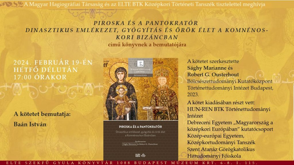 A Magyar Hagiográfiai Társaság és az ELTE BTK Középkori Történeti Tanszék tisztelettel meghívja