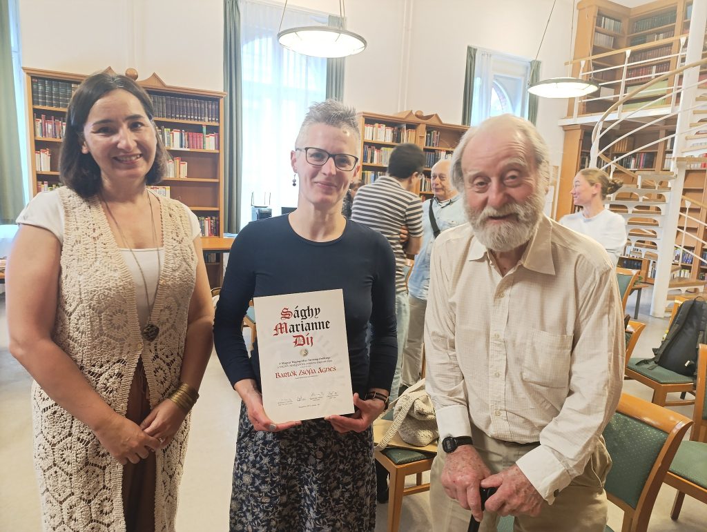2025-ben Bartók Zsófia Ágnes nyerte a Sághy Marianne-díjat. Az oklevelet Sághy Marianne családja (Di Sandri Gabriella és Sághy Lajos) adta át, a nyertest Korondi Ágnes laudálta.