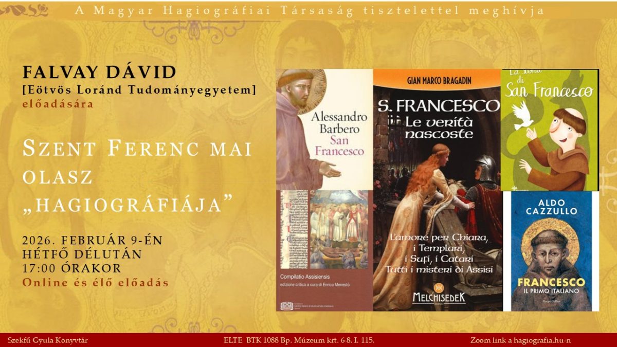 A Magyar Hagiográfiai Társaság tisztelettel meghívja